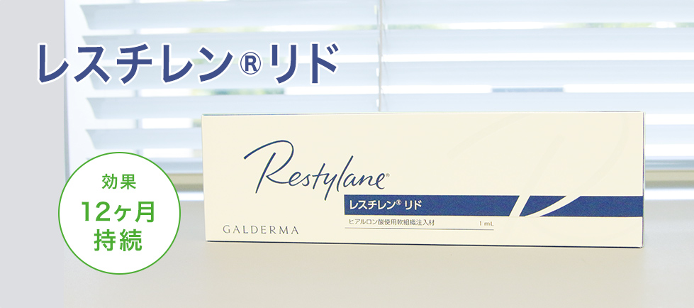 レスチレン®リドはレスチレン®リフト™リドより硬さが滑らかで、額・頬・目の下の凹みなどのボリュームアップに適しています。ボリュームロスに対して注入することで、ゴルゴラインの改善や、フェイスラインを整える事が可能です。