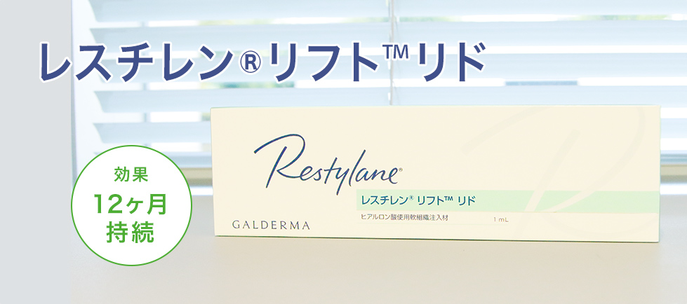 レスチレン®リフト™リドは硬いヒアルロン酸製剤で、しっかりとしたリフティング効果があり、ほうれい線やマリオネットラインの改善、顎やフェイスラインを整えるのに適しています。さらに注入部位にしっかりとどまるため効果が長く持続します。